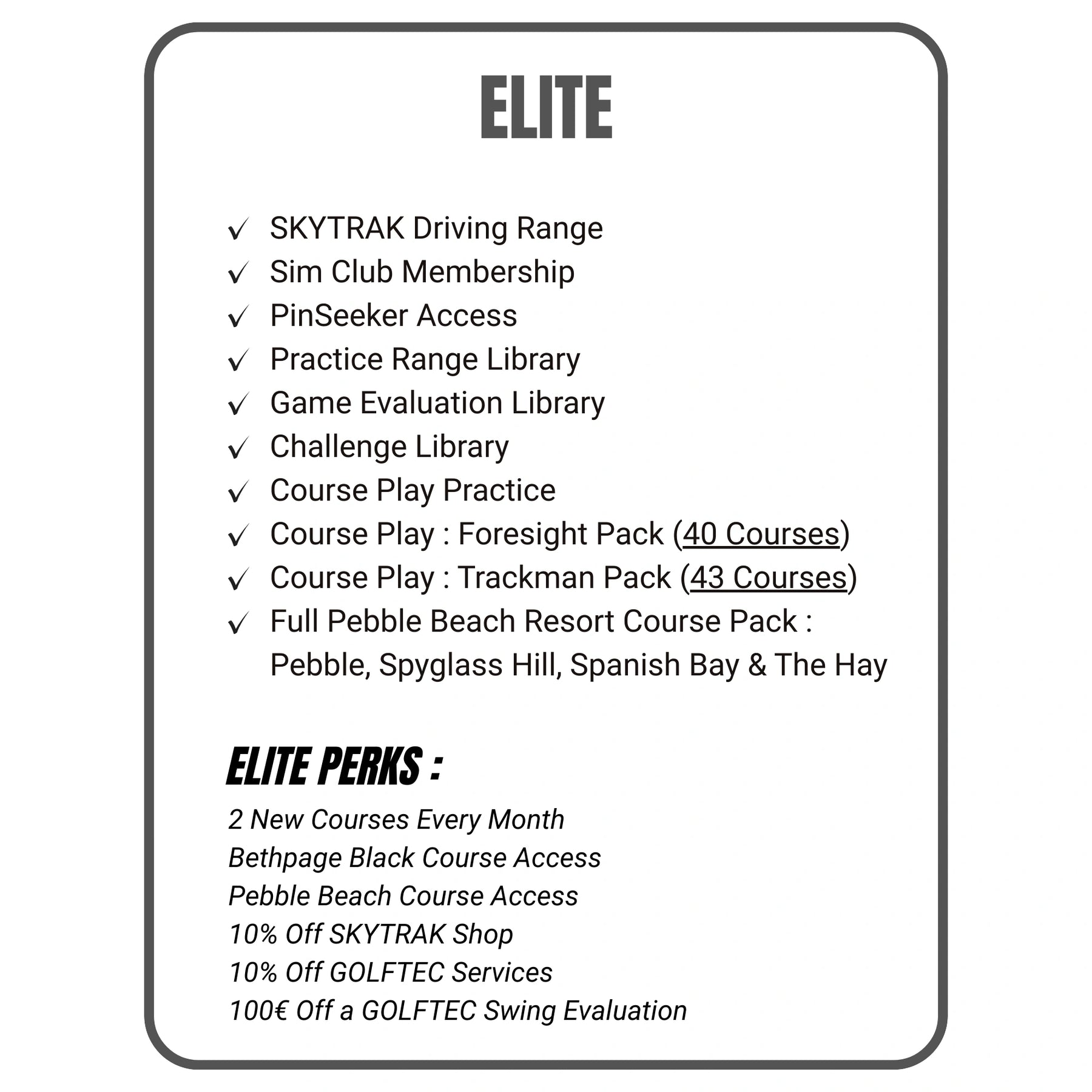 To unlock the full potential of your SkyTrak Max, an active annual membership is required. Choose the plan that fits your simulation goals :